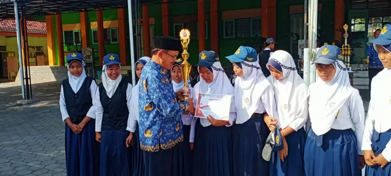 Senyum tersebut menggambarkan kebahagiaan tatkala agenda pemberian piala dan piagam penghargaan kepada siswa-siswi berprestasi dalam menyambut 78 tahun kemerdekaan RI tingkat desa, kecamatan, kabupaten, maupun tingkat Pulau Jawa